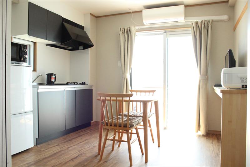 お部屋にはキッチン、洗濯機&乾燥機(無料)も付いております。